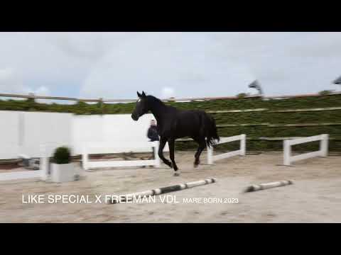 Langgelijnd paard met een mooi model en een rustige uitstraling. Komt voorzichtig over op de sprong en laat een constante, fijne manier zien. Beweegt makkelijk en beschikt over een goede draf en een grote, gebalanceerde galop. Toont natuurlijk vermogen en is geschikt voor meerdere disciplines. Vader Like Special – 1.30m Goedgekeurde hengst (DSP), zoon van Like Angel (1.35m). Moderne hengst met goede techniek en instelling. Moeder Lieneke (v. Freeman VDL 1.40m) Geen sportresultaten Moederlijn / stam Grootmoeder Ellieteke (v. Ukato 1.60m) Uit de moederlijn: – Dannuco – 1.45m – Fernando – 1.30m – Grandprix – 1.35m Verder in de stam: – Mucho Pride – 1.40m – Nabucco – 1.60m – Addie – 1.35m Goedgekeurde hengsten in de lijn: – Like Special – Like Angel – Los Angeles – I’m Special de Muze – Freeman VDL – Emmerton VDL – Ukato – Numero Uno – Eldorado van de Zeshoek Sterke internationale prestatiestam met meerdere 1.30m–1.60m paarden en bewezen sportgenen.