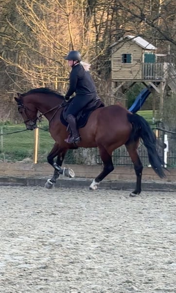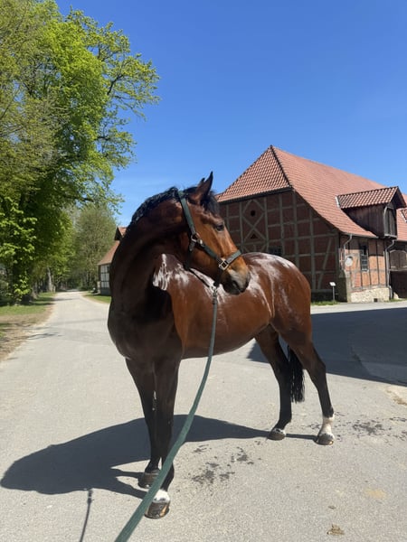 Schweren Herzens suche ich für meinen 8-jährigen Württemberger Wallach Catchy ein neues Zuhause, in dem er weiter gefördert und geschätzt wird. Catchy ist ein großrahmiges, modernes Pferd mit beeindruckender Erscheinung, sehr guten Grundgangarten und viel Qualität. Aufgrund seiner Größe wurde er spät angeritten, was ihm Zeit zur Entwicklung gegeben hat – eine Entscheidung, die sich heute klar auszahlt. Aktuell ist Catchy dressurmäßig auf solidem A-Niveau, mit weiterem Entwicklungspotenzial nach oben. Im Springen zeigt er enormes Potenzial, hier wurde er jedoch bis auf ein paar Kreuze und Cavalettis nicht weiter gefördert (Videos vom Freispringen vorhanden) . Unter dem Reiter zeigt er sich arbeitswillig, sensibel und leistungsbereit, dabei stets ehrlich. Catchy kennt Halle, Außenplatz und Gelände, auch Auswärtstraining hat er bereits souverän gemeistert und präsentiert sich auch in fremder Umgebung konzentriert und entspannt. Er ist ein Pferd, das seinem Reiter zuhört und eine klare, ruhige Führung braucht. Gibt man ihm Sicherheit, dankt er dies mit Losgelassenheit, Ausdruck und feinem Reitgefühl. Daher ist Catchy kein Anfängerpferd, sondern ein idealer Partner für einen ambitionierten Reiter, der ein Pferd weiter formen und fördern kann und möchte. Catchy wird nicht als Voltigierpferd abgegeben! Kurzinfos: • Name: A Kind of Magic 30 • Geboren: 03.05.2018 • Stockmaß: 178 cm • Rasse: Württemberger • Abstammung: Acordelli x Landgraf | Catchy besitzt einen Ersatzpass ohne eingetragene Abstammung, da die Originalunterlagen nach dem Tod des Züchters leider entsorgt wurden und eine Nachtragung nicht mehr möglich war. Catchy ist regelmäßig beim Schmied, aktuell vorne beschlagen, verfügt über alle notwendigen, regelmäßig aufgefrischten Impfungen und wird kontinuierlich osteopathisch betreut. Eine große AKU (08/2024) liegt ohne gravierenden Befund vor. Catchy neigt Beim füttern des Kraftfutters dazu kurz zu weben, sobald er Futter im trog hat, zeigt sich dieses nicht mehr. Er steht bei uns in einer geräumigen Box mit Außenfenster und zeigt im normalen Alltag keine Anzeichen von weben. Wir denken es kommt aus der Stress Situation des Kraftfutter fütterns auf der großen Stallgasse heraus. Catchy ist ein Pferd für Menschen mit Gefühl, Anspruch und Herz – ein echter Partner für den weiteren Weg. Probereiten nach Vereinbarung jederzeit möglich.