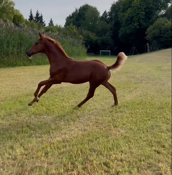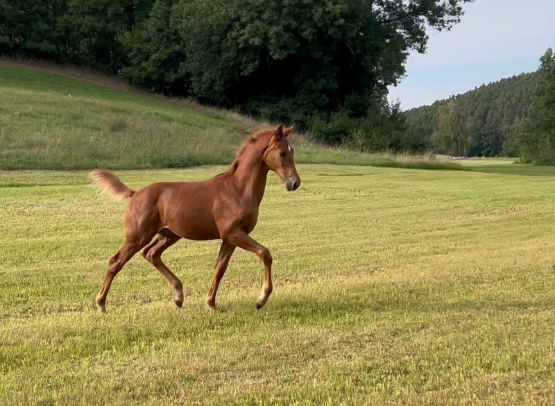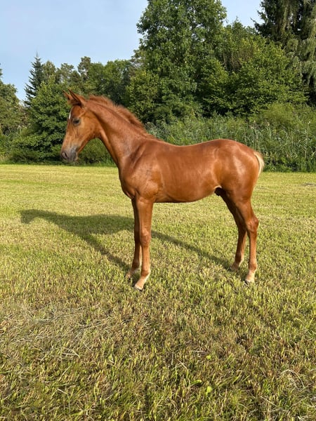 Liebe Interessenten, Wir bieten hier unser wunderschönes, bewegungsstarkes Hengstfohlen aus bester Dressurabstammung an. Er ist extrem Menschen bezogen und überzeugt durch seinen Charme. Er ist Silber Prämienfohlen Extreme U.S. x Londontime Extreme U.S. hat das Siegergen – und vererbt dieses auch. Zum KWPN-Fohlenschampionat entsandte er aus seinem Debütjahrgang die Rekordzahl von sieben Nachkommen und stellte mit Tamina Delin BS das Siegerfohlen und mit Thor F den Bronzegewinner, der zugleich auch bestes Hengstfohlen in Ermelo/NED war. Vielfach stellte er die Fohlen-Preisspitzen. Escamillo, Der Vater, der Dressurpferde-WM-Silber- und Bronzegewinner, Burg-Pokal-Finalist und Inter II-Sieger Escamillo, stellte bereits zahlreiche Toppferde. Londontime Souverän auftretender Dressurnachwuchs stets in idealer Selbsthaltung. Hochmodern in der Gesamtaufmachung, verfügt über aussergewöhnliche Qualitäten in den Grundgangarten bei hervorzuhebender Fundamentskorrektheit. Die HLP bestätigte mit 137.73 Punkten im Dressurindex die hohe Einschätzung. Londontime war Champion im Siegerpreis beim Reitpferdechampionat in Elmlohe und wenig später Spitzenpferd der Hannoveraner Herbstauktion in Verden 2006 für den bisherigen Rekordpreis von 510'000 Euro. 2007 war er erfolgreicher Bundeschampionatsteilnehmer Bei Interesse gerne melden