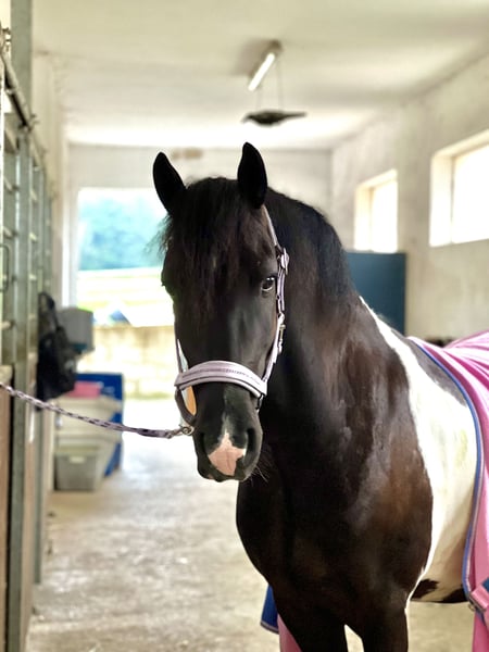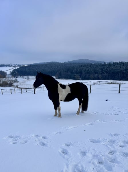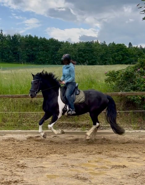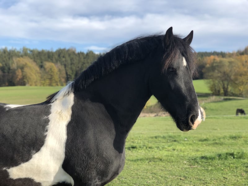 Verkaufe meinen charmanten Barockpinto-Wallach, geboren im Jahr 2018. Dieser elegante Schecke deckt mit seinem Stockmaß 154 cm und seinen ausgeprägten barocken Linien auch große Reiter ab. Mit seinem harmonischen Körperbau und seinem freundlichen Wesen ist er bestens für den gehobenen Freizeitbereich oder kleine Turniere geeignet. Der Wallach ist gut geritten, zeigt eine angenehme Grundausbildung und ist offen für neue Aufgaben. Er ist sehr menschenbezogen und lernwillig. Ein vielseitiges Pferd mit viel Potenzial, das sowohl durch seine Erscheinung als auch durch sein Charakterbild überzeugt. Bei Interesse stehe ich gerne für weitere Informationen und eine Besichtigung zur Verfügung.