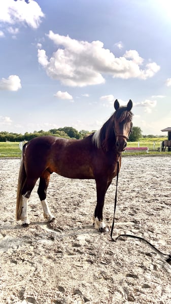 Avec le cœur lourd, je vends mon magnifique hongre baroque Pinto, âgé de 7 ans. C'est un cheval très spécial, doté d'une grande présence et de charme, qui cherche maintenant son compagnon idéal. Race : Baroque Pinto Sexe : Hongre Âge : 7 ans, 169 cm au garrot Dressage : Début de l'apprentissage en dressage Utilisation : Loisir, possibilité de dressage ultérieurement Expérience en compétition : Aucune Idéal pour : Non adapté aux débutants ou aux enfants ! Il recherche un cavalier expérimenté, sensible, avec une main calme et ferme. Il se montre volontaire à apprendre, attentif et très proche de l'humain. En raison de son niveau de dressage et de son tempérament, ce n'est pas un cheval pour débutants. C'est un cheval qui a besoin d'être sollicité tant physiquement que mentalement – avec un entraînement régulier, il se montre équilibré et motivé au travail. Un cavalier expérimenté, patient et ayant du feeling, pourra faire de lui un fidèle compagnon de loisir. Il ne présente aucune mauvaise habitude comme piaffer, se cabrer ou autres ! En extérieur, il marche calmement avec d'autres chevaux et ne pose pas de problème, bien qu'il soit encore au début de sa mise en confiance en terrain varié et ne soit pas encore totalement sûr en extérieur. Il est très important pour moi qu'il soit confié à des mains aimantes et respectueuses du bien-être du cheval, avec beaucoup d'espace, de mouvement et une pension adaptée – un lieu où il pourra simplement être un cheval ! Vente non destinée aux revendeurs, et il sera vendu avec un contrat de protection. À confier uniquement à des personnes de confiance ! Si vous êtes sérieusement intéressé, n'hésitez pas à me contacter. Priorité à la qualité du foyer plutôt qu'au prix !
