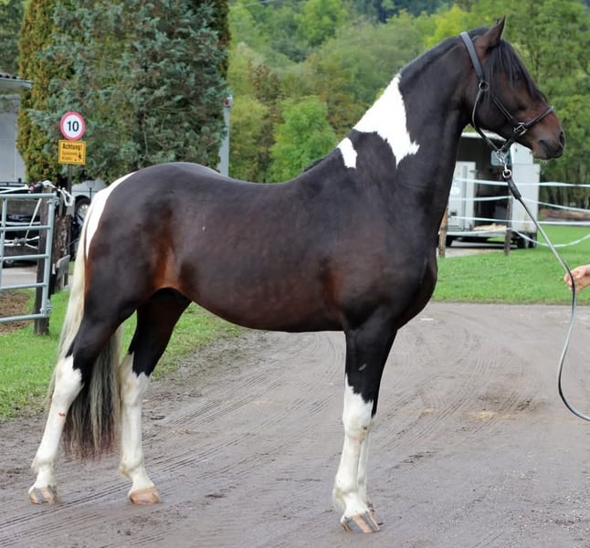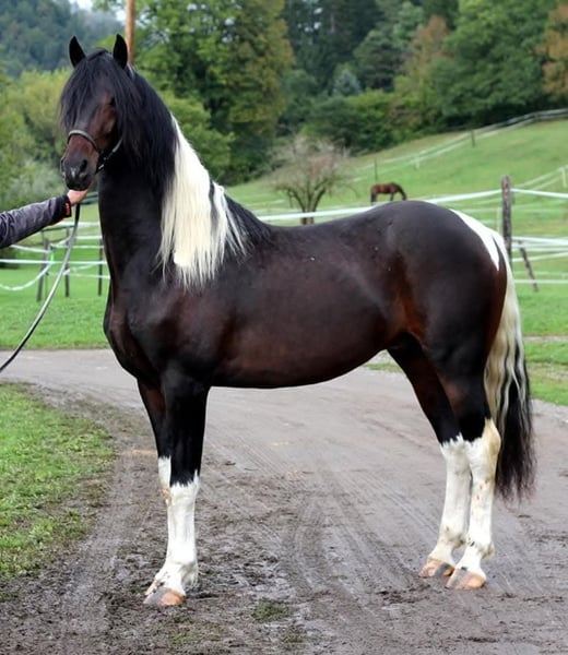 Verkaufe meinen selbstgezogenen Barockpintowallach Ikarus. Er ist am 16.4.2018 bei mir am Hof geboren und hat jetzt ein Stockmaß von ca 1.67cm. Seine Mutter eine PRE Stute Malaya IV und sein Vater Johannes BP09 (Friese/Warmblut). Im Jahr 2018 erreichte er bei der Barockpinto Zuchtschau Österreich die 1ste Premie, 2019 folgte die zweite 1ste Premie und 2021wurde Ikarus erfolgreich zum Deckhengst gekört. Er wurde nach zwei Jahren Deckeinsatz kastriert, danach wurde er als Freizeitpferd geritten, auch ein wenig Freiheitsdressur und kleine Zirkuslektionen beherrscht er. Ikarus ist ein sehr menschenbezogenes und sensibles Pferd, daher braucht er jemanden mit Pferdeerfahrung, Geduld, Ruhe und fairen Umgang. Er ist kein Anfängerpferd!!! Hufschmied und Hänger fahren stellen kein Problem für ihn dar. Ikarus ist fein zu reiten, und durch diese tolle Anparrung verfügt er über schöne Gänge und auch sein Körperbau ist sehr harmonisch. Vor ca. 3 Jahren wurde Ikarus als leichter Allergiker eingestuft, er lebt bei mir im Offenstall mit seinem Norikerfreund, und im Sommer auf Weiden oder Almen. Seit 1 1/2 Jahren merkt man von seiner Allergie sehr wenig, bis gar nicvht mehr. Also wer ein Pferd mit Fokus auf Exterieur, Bewegung und Charakter sucht, ist bei diesem Prachtkerl genau richtig.