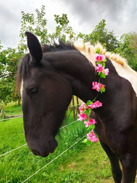Stunning Baroque Pinto Mare with Competition Experience For sale is an almost 10-year-old Baroque Pinto mare with an impressive black and white pinto coat and a classic baroque exterior. She combines charisma, willingness to perform, and versatility in one elegant package. Her pedigree includes a Friesian sire and a Tinker dam, giving her a blend of elegance, nerve, and rideability. She is well-trained in multiple disciplines and excels in both dressage and jumping. Additionally, she is proficient in various circus tricks and consistently demonstrates a eager, motivated attitude. Competition experience includes a first-place finish at the Outriders Cup 2025. She is currently in ongoing training and continues to be developed. Highlights include: - Dressage training - Jumping experience - Versatility - Circus tricks - Loading calmly and reliably - Competition experience - People-oriented and performance-driven A talented, characterful mare for ambitious leisure riders or competitive riders seeking a special horse with presence.