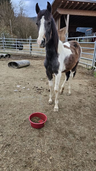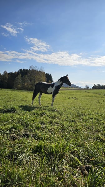 Diese wunderschöne Stute hört auf die Name Oshana und ist ein riesen schmuse Maus. Sie liebt kuscheln und kommt mit andere Pferden super klar. Sie ist allerdings ein Jungpferd die Ausbildung braucht und da sehr gern ihr Grenzen testet. Sie ist sehr Menschen bezogen und wie oben erwähnt liebt sie auch die Nähe von Menschen und kuscheln. Aber besonders beim Ausbildung mag sie momentan gern ihr Kraft als "teenager" testen. Definitiv ist sie ein Pferd für erfahrene Besitzer. Sie steht im Offenstall und verträgt sich gut mit alle andere Pferden. Ihr werden gerade die Basics beigebracht und trainiert aber sie muss weiter trainiert werden. Allerdings muss ich mich leider aus finanziellen und gesundheitlichen gründen schweren Herzens von ihr trennen. Ich hoffe ich finde die richtige zuhause für sie. Bei bedarf kann auch die Ausrüstung wie Halfter & Stricke mitgenommen werden.