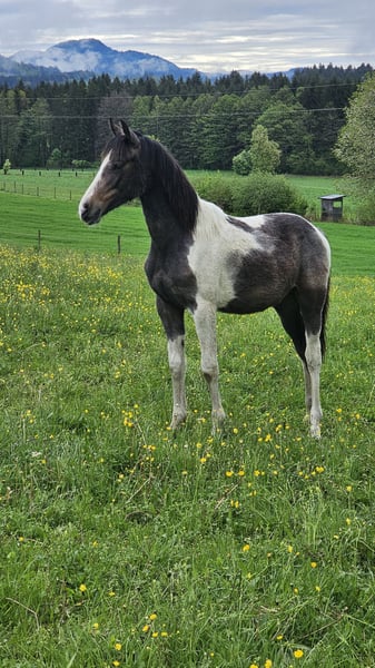 Oshana is a 2-year-old Baroque Pinto mare. She has a valid horse passport and is in good health. She has already been lunged and introduced to basic groundwork. She walks nicely on a lead, is familiar with the farrier, and is regularly trimmed and cleaned. She stands well when being brushed. The only thing is that she can be a bit fussy and whiny when it comes to having her hooves picked out. She is a huge cuddle bug and loves affection, but she is also increasingly enjoying her work. Unfortunately, I need to sell her due to financial reasons. Equipment can be included upon request.