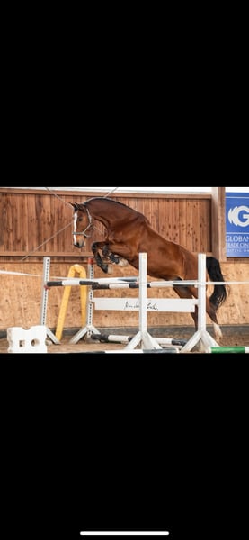 Bonjour les passionnées d'équitation ! Tu recherches un maître d’équitation formidable avec qui tu peux traverser tous les hauts et les bas ? Avec qui tu peux faire n’importe quoi ? Qui n’a pas besoin d’un abonnement chez le vétérinaire et qui est un cheval fiable ? Tu peux lui offrir beaucoup d’amour, de sensibilité, un joli endroit et des friandises ? Alors tu devrais absolument faire la connaissance de Lord. Il a 18 ans, mesure 1,80 m et est un cheval de sang bavarois. Un cheval XXL avec un cœur XXL, mais aussi un peu sensible. Il a été brièvement un cheval d’école et de voltige dans notre écurie. Le changement fréquent de cavalier ne lui a pas vraiment réussi, c’est pourquoi je l’ai repris il y a 9 ans. Son seul point faible est son headshaking au printemps/été, mais cela se gère assez bien avec un masque. Je l’ai principalement monté en loisir, en dressage et en saut d’obstacles. Il connaît aussi l’ambiance des concours et s’y est toujours montré calme. En dressage, il se situe au niveau A. En saut, mes performances personnelles étaient en A*, mais il pourrait certainement faire plus avec un cavalier plus audacieux. Il devient vite excité en parcours. Sinon, il connaît le longe, le travail à pied, le travail en liberté, le saut en terrain varié, le saut en liberté, le monte pour les enfants… il fait tout cela très gentiment. Tous les contrôles vétérinaires, dentaires, par le maréchal-ferrant, le vétérinaire ostéopathe et le chiropracteur sont effectués régulièrement. Si Lord a éveillé ton intérêt, n’hésite pas à me contacter. En tout cas, la qualité du lieu prime sur le prix.