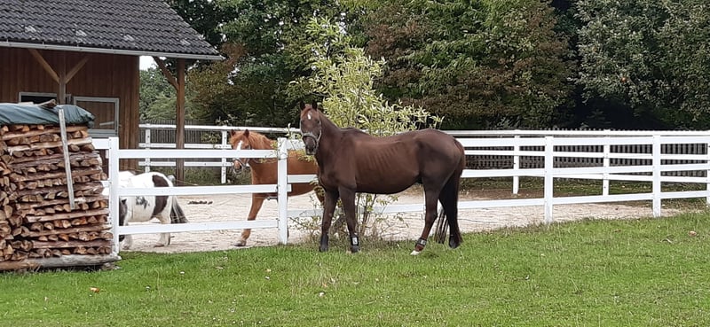 Verkaufe wegen Aufgabe des Reitsports meinen Warmblutwallach. Er ist sehr menschenbezogen, sensibel und brav, braucht aber seine Grenzen und deshalb kein Anfängerpferd. Er wurde gut ausgebildet und danach von mir überwiegend in der Bahn gymnastizierend geritten, geht aber auch sehr gerne ins Gelände. Die letzten Wochen wurde er wenig geritten, kann aber wieder altersentsprechend antrainiert werden. Da Capo ist für sein Alter ein unverbrauchtes Sportpferd mit sehr schöner Bewegung. Zu Artgenossen ist er sehr lieb und kann sich gut in eine Gruppe einfügen.