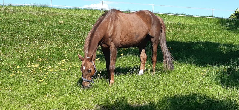 Verkaufe wegen Aufgabe des Reitsports meinen Warmblutwallach. Er ist sehr menschenbezogen, sensibel und brav, braucht aber seine Grenzen und deshalb kein Anfängerpferd. Er wurde gut ausgebildet und danach von mir überwiegend in der Bahn gymnastizierend geritten, geht aber auch sehr gerne ins Gelände. Die letzten Wochen wurde er wenig geritten, kann aber wieder altersentsprechend antrainiert werden. Da Capo ist für sein Alter ein unverbrauchtes, fittes Sportpferd mit sehr schöner, raumgreifender Bewegung. Zu Artgenossen ist er sehr lieb und kann sich gut in eine Gruppe einfügen.