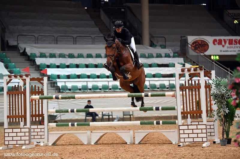 Ambra is a 13-year-old mare successfully competing up to 1.40 meters, including in junior classes. She demonstrates plenty of scope in show jumping and has a great talent for jumping, which always creates a positive feeling. In handling, she is very straightforward and very sweet. For more information, please contact 015127518957.