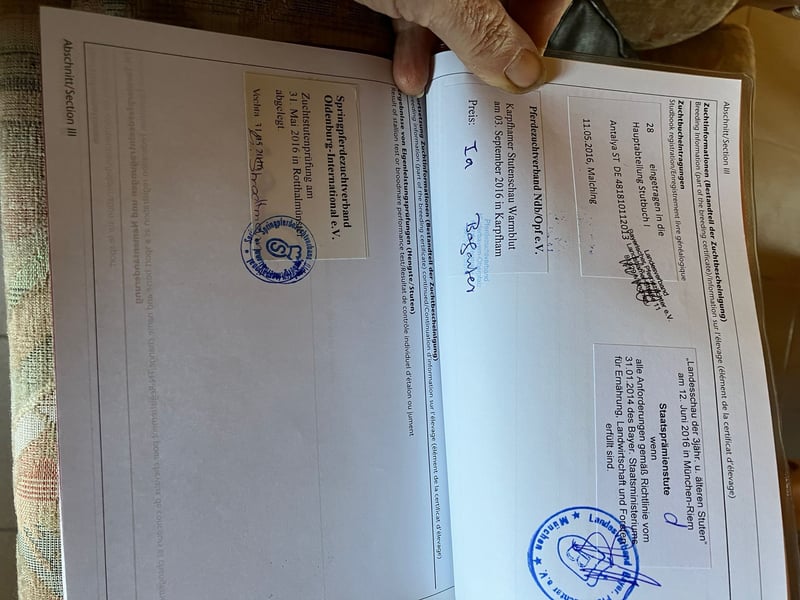 For Sale / Lease: Elegant Bavarian Warmblood Mare / Broodmare Available for purchase or lease is a graceful Bavarian Warmblood mare, born in 2013. This stunning grey mare impresses with her harmonious appearance and balanced temperament. Standing at 16.1 hh, she offers the perfect size. She comes from a renowned breeding line and has been carefully evaluated for breeding quality. She is a licensed state premium mare, has produced her own foals, and is in excellent health. Excellent character. Location: Lower Bavaria. In addition to sale, leasing as a high-quality broodmare is also possible. Leasing for embryo transfer available at market rates. Please feel free to contact me for further information or if you are interested.