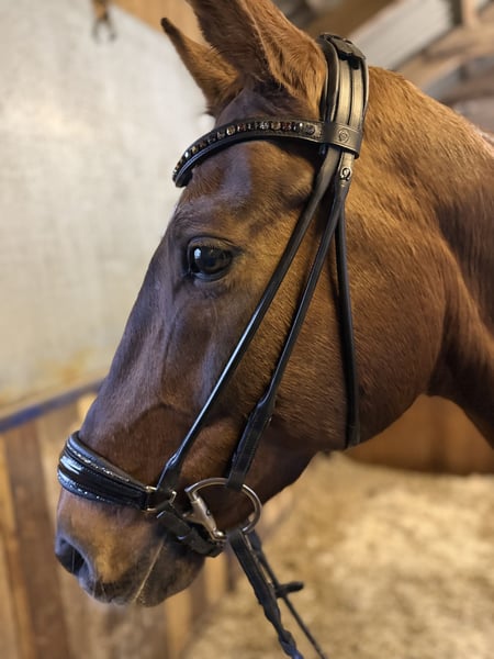 Zum Verkauf steht diese feine Dunkelfuchsstute, die unserer damals neunjährigen Tochter den erfolgreichen Umstieg auf Großpferde ermöglicht hat und maßgeblich zu ihren Schleifen in der E- und A-Dressur sowie zur Aufnahme ins Perspektivkader beigetragen hat. Zu Beginn wurde die Stute völlig unkompliziert mit Ausbindern und an der Longe geritten und förderte unsere Tochter geduldig in ihrer reiterlichen Entwicklung. Inzwischen – unsere Tochter ist nun 12 Jahre alt – konnten sich beide bis zu sicheren L-Lektionen sowie einzelnen M-Lektionen weiterentwickeln. Dank ihrer großen Freude am Springen sammelte das Paar zudem wertvolle Erfahrungen im Parcours. Die Stute kennt Stangenarbeit, Freispringen, Führanlage, Auswärtsübernachtungen, Reiten mit Halsring und vieles mehr. Ausritte wurden bei uns aufgrund der örtlichen Gegebenheiten nur selten unternommen, waren jedoch beim Vorbesitzer regelmäßig Bestandteil ihres Alltags. Da sie ein vollwertiges Familienmitglied ist, geben wir sie ausschließlich in liebevolle und verantwortungsbewusste Hände ab. Wir wünschen uns, dass sie erneut einem Kind oder Jugendlichen diese Entwicklung ermöglichen darf oder von einem ambitionierten Freizeitreiter mit der gleichen Aufmerksamkeit und Wertschätzung gefördert wird. Keine Offenstallhaltung.