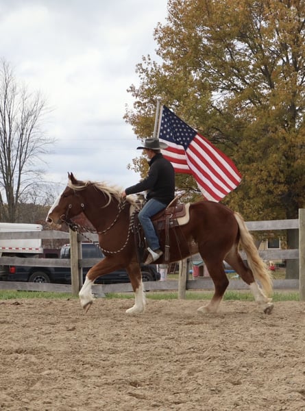 ♦️𝐍𝐄𝐖 𝐘𝐄𝐀𝐑'𝐒 𝑬𝒙𝒕𝒓𝒂𝒗𝒂𝒈𝒂𝒏𝒛𝒂♦️ Happening now thru MONDAY | JANUARY 12th - Available EXCLUSIVELY on HorseBid's website! For more details and to register visit: www.Horsebid.com CONSIGNOR CONTACT: Blackstone Stables 248-390-6831 LOCATION: Howell, MI BREED: Belgian Cross REGISTERED: No REGISTERED NAME: Rags COLOR: Chestnut HEIGHT: 16.2 AGE: 5 GENDER: Gelding I am proud to introduce you to Rags! He’s something special, something unique and something with a huge heart. Rags has the appearance of a teddy bear with eyes that bring comfort with a glance. Rags stands 16.2hh at 5 years old. He’s a stunning light chesthnut with lots of chrome and a stunning flaxen mane and tail. Rags is a very substantial guy. He has great conformation, solid bone structure, excellent hooves and he’s well muscled. Rags is loaded with personality. He gets along with most everything in the pasture from the cows to the donkeys; he’s everyone’s best friend. He can live in or out and is content either way. He loves people and attention. Kids as young as 5 can ride him independently. Rags stands like a rock for grooming tacking and mounting. Under-saddle he comes equipped with 3 stellar gaits, a quiet walk, a floaty trot and the most comfortable canter around. His gaits are all very adjustable. He works off of your seat and leg very well. Rags has been exposed to all types of obstacles such as balls, tarps, pool noodles, bridges and pedestals. He works off leg and seat so well you can pull the bridle and just clip a lead rope to the halter. Rags is more whoa than go. Once you climb on his back this is the horse that will make you want to ride! He’s seen the mountains, open fields, roads, water and woods. He’s been out on several hunter paces. Rags has been camping and picketed and is always game for an adventure. Rags also loves to drive! He’s pulled a carriage in weddings, parades and just around the farm! This boy has great color, excellent conformation, excellent training, loads of experience and a mind to match! He lives in Howell, MI 48855. Call or text Ellesse Schwartz at 248-390-6831 for more information.