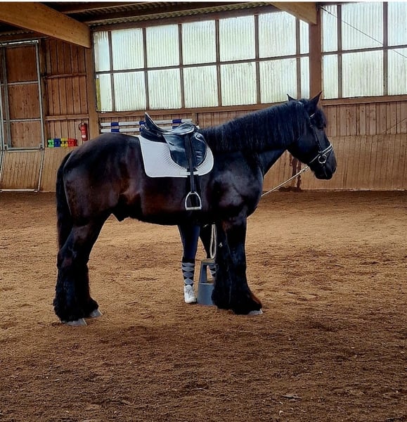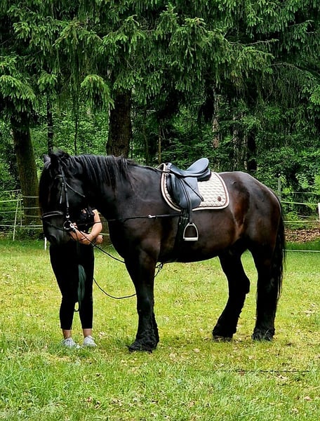 **Sales Advertisement: Belgian Draft Gelding** For sale is our beautiful Belgian Draft gelding, born in June 2019. With an impressive height of 175 cm, he is a true eye-catcher and is ideally suited for leisure activities. **Features:** - Breed: Belgian Draft - Gender: Gelding - Year of Birth: 2019 - Color: Black - Height: 175 cm - Use: Leisure This charming gelding is characterized by his friendly nature. He is well-trained, easy to handle, and is perfect for various leisure activities. He has been professionally started under saddle but has had a longer break recently. He learns quickly but needs a loving and consistent hand. He is well-behaved with the farrier and loads easily onto the trailer. He is PSSM free. We are finding it very difficult to part with him due to health and time constraints. If you are interested or have any further questions, please feel free to contact me. Come visit us and get to know this great guy in person!