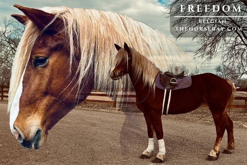 Freedom is a 5-year-old, 18.2-hand Belgian mare with an absolute heart of gold. She truly is what dreams are made of—from her incredible disposition and sweet, kind personality to her willing attitude and striking looks. This mare turns heads everywhere she goes and has the temperament to match her beauty. Freedom has been exposed to all aspects of trail life, from mountain rides to town riding. She confidently rides alongside bikes, strollers, runners, and heavy traffic. She has passed semis without flinching, crossed bridges, gone under tunnels, and walked straight through rivers like it’s nothing. She’s steady, reliable, and takes everything in stride. Not only is Freedom a trail pro, but she also has a solid foundation in the arena. She has a smooth, comfortable walk, jog, and lope, and works beautifully off your voice. She stops off your seat and voice cues and is incredibly thoughtful—she’s even learned to stop and wait if you lose your balance, giving you time to regain your seat. Freedom is well-mannered and easy to handle. She lowers her head willingly for the halter and bridle and will side-pass to the mounting block, standing patiently while you get on. She goes barefoot with strong, solid feet and handles farrier work like a pro, even without stocks. She picks up her feet easily and stands quietly. On the ground, Freedom is just as special. She stands to be brushed and loved on, ties quietly for as long as needed, and genuinely enjoys attention. She has also been exposed to flags, tarps, and the beginning stages of collection work. She rides both English and Western and looks beautiful doing either.