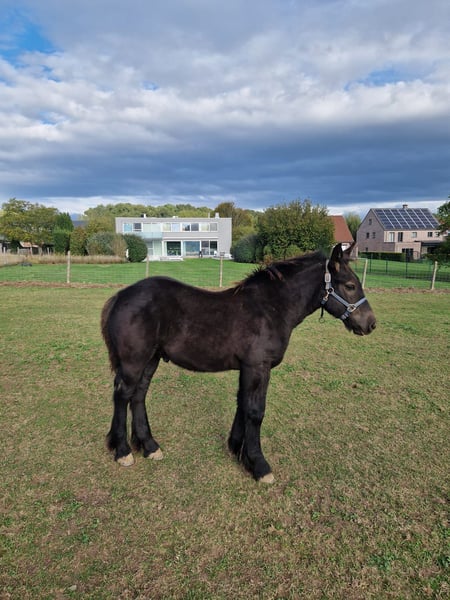 Poulain de mâle de trait brabançon. Entièrement noir. Âgé de 5 mois. Très bien conformé.