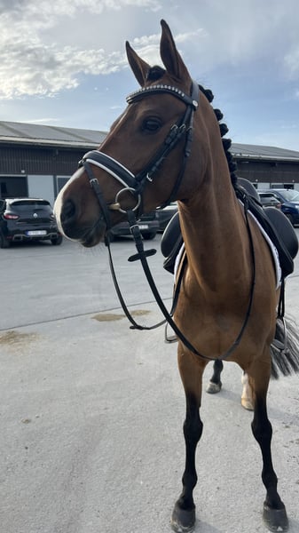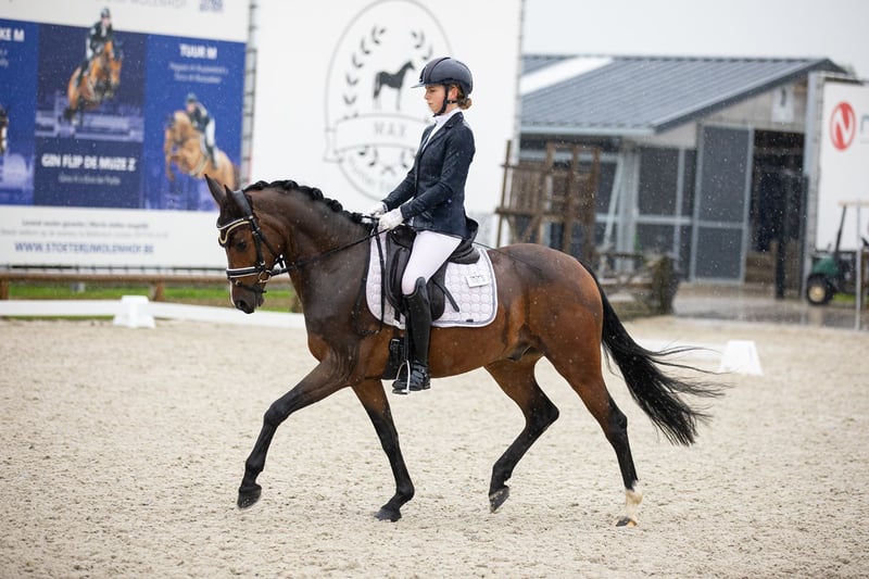 Very easy to ride schoolmaster. At 6 years old, he has a bright career ahead of him, but he can already be a true schoolmaster. He has been trained since the age of 4 by a small adult. He knows all FEI exercises and has extensive competition experience with good results. Winner of the Belgian Cup for 5-year-old ponies. His father is a Light Tour dressage horse, combined with a small mare, giving him the qualities of a large horse in a pony. He is also very easy and sweet in handling.