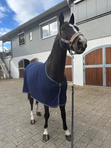 Hola, Estamos vendiendo nuestro primer caballo de saltos de nuestra hija, que ahora salta más alto. Este gelding de 11 años, con mucha experiencia, ya ha ayudado a mi hija a avanzar en el deporte de saltos y también le ha brindado muchas alegrías en paseos y excursiones. Es muy agradable de manejar, y mi hija, que tenía solo 9 años en ese momento, ya podía hacer todo con él. A los 10 años, ya logró su primera clasificación en un concurso de saltos de 120 cm, con una puntuación de 8,6, y ese mismo año consiguió un puesto en el equipo de caballos de la región. Ahora busca su hogar definitivo. También es apto para principiantes o jinetes en recuperación, ya que es muy tranquilo, pero además resulta cómodo de montar y también proporciona placer en la doma. Por favor, contactad por teléfono al 01605847972.