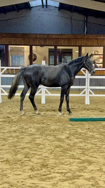 Sehr großes Pferd, sehr lieb. Dieses muss noch an Kraft gewinnen und ein Jahr auf der Weide verbringen. Ausgezeichnete Abstammung.