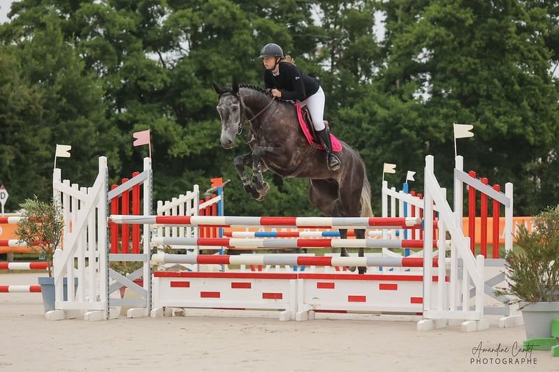 Bonjour Hongre SBS de 5 ans (2020) 1m72 🏆Sorti en compétition CSO cycles classique jeunes chevaux 5 ans (120/125cm) Potentiel 130cm minimum 🩺Visite veto et radios avec compte rendu Ok datant d’août 2025 ✅ À jour de tout, marechal, vaccins, vermifuges, ostéopathe, dentiste Ok transport (van et vl) Ok soins (tonte, etc) Ok extérieur (seul ou accompagné) ✉️ Plus d’infos en mp Lien horsetelex : https://www.horsetelex.de/horses/pedigree/2726098/ouvre-l-il-rivereuille