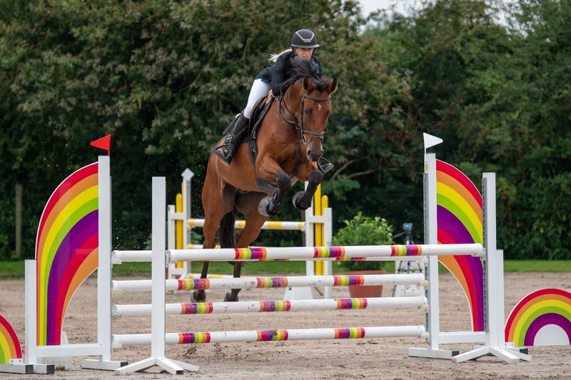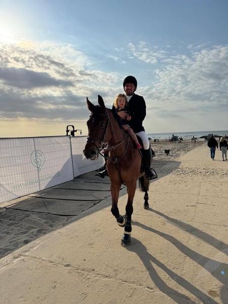 Schöner 8-jähriger Rüde. Sehr gut laufend und anhängliches Pferd. Ehrliches Temperament und leicht zu reiten. Während des Dressurtrainings etwas schüchtern, auf Parcours eher gut vorwärts. Versucht stets, eine fehlerfreie Runde zu zeigen. Brav bei Ausritten, sowohl alleine als auch in der Gruppe. Nicht für Anfänger geeignet, aber ideal als Übergangspferd vom Pony zum Pferd, vorausgesetzt, der Reiter ist gewöhnt, ein vorwärts orientiertes Pony zu reiten. Ein kooperatives Pferd, mit dem man gut weiterwachsen kann. Er hat Turniererfahrung bis 1,20 m, bei denen er mehrfach fehlerfrei und platziert war. Er geht problemlos in den Hänger, ist brav beim Hufschmied und beim Tierarzt (jährlich). Stockmaß 1,67 m. RX im September 2021 abgenommen.