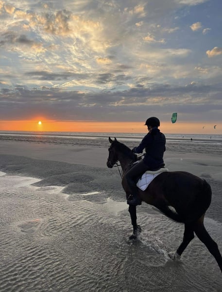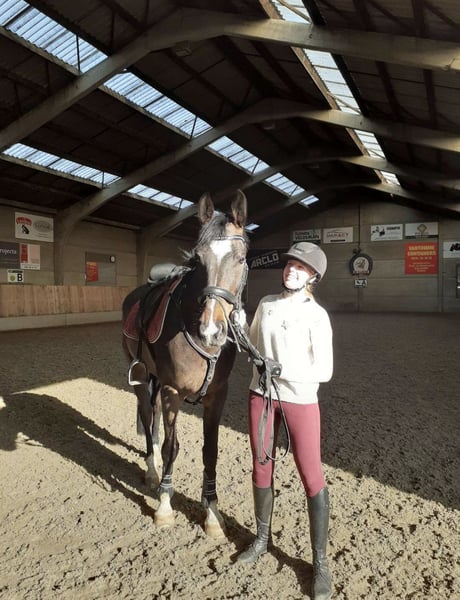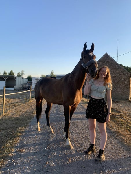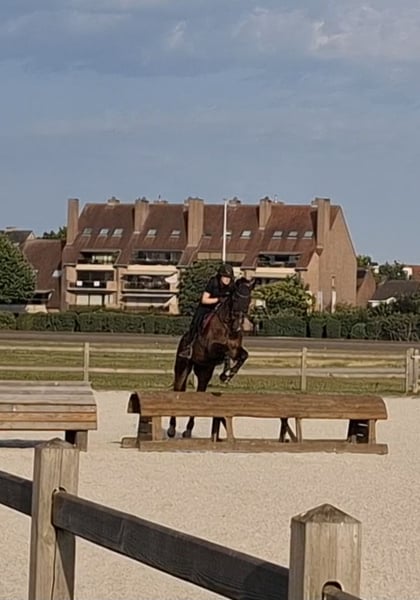 Voici Allegro. C’est un hongre de 8 ans (né le 12/05/2017). Il mesure 1,70 m. Allegro est un cheval très doux et honnête dans sa manière d’être. Il saute en compétition entre 90 et 100 cm, mais il progresse en entraînement vers des hauteurs plus importantes. Il pratique également le concours complet lors des entraînements. Il a beaucoup de potentiel, mais il lui faut un cavalier expérimenté capable de le faire ressortir. Il possède trois allures belles et correctes, des épaules souples, des changements simples, et peut se déplacer avec un contact léger et une attitude d’attente avec le bon cavalier. Pour moi, il est malheureusement devenu un peu trop fort. Allegro nécessite un cavalier expérimenté qui ose continuer à le travailler, notamment en hiver, malgré sa fraîcheur et sa puissance. Il est très facile à charger dans le camion, pour le maréchal-ferrant, le vétérinaire, le pansage, etc. Très sociable, il a vraiment besoin d’un paddock et peut cohabiter avec d’autres chevaux. Il partira uniquement vers une famille ou un foyer 5 étoiles. Pas pour des marchands ou des centres équestres. Pour plus d’informations, merci de me contacter en message privé.