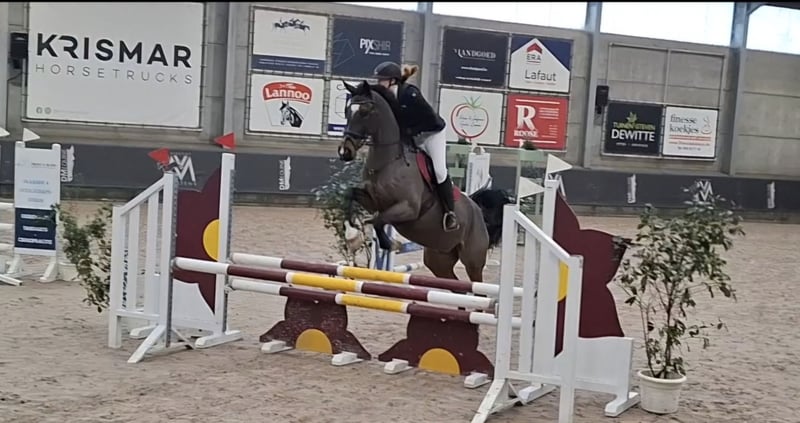 Dit is Allegro. Hij is een 8jarige ruin (12/5/2017). Hij meet 1.70m. Allegro is een heel lief en eerlijk paard in omgang. Hij springt 90/100cm op wedstrijd, maar gaat hoger in training. Hij doet ook eventing op training. Hij heeft heel wat potentieel, maar heeft een goede ruiter nodig die het eruit kan/ wil krijgen. Hij heeft 3 mooie/correcte gangen/wijken/ eenvoudige wissels en kan met fijn contact, aanleuning lopen met de juiste ruiter. Voor mij is hij jammer genoeg te sterk geworden. Allegro heeft wel een ervaren ruiter nodig die hem durft door te rijden, door zijn frisheid en sterkheid in de winter. Hij is flink voor op de camion, voor de hoefsmid, dierenarts, scheren, ... Heel sociaal, heeft echt wel een wei nodig en kan met andere paarden samen staan. Gaat alleen weg naar 5⭐ huisje. Geen handelaren of maneges. Voor meer info graag pb.