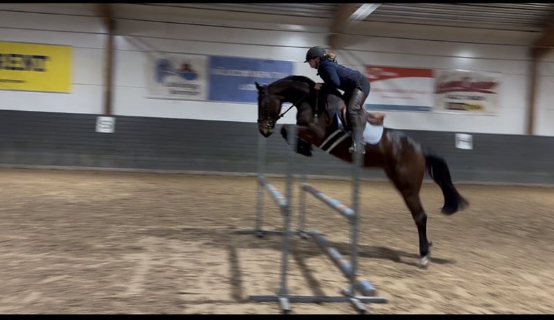 Discover the elegance and athleticism of this stunning Belgian Sport Horse mare, born in 2022. With a striking Bay-Dark coat and standing at 162 cm, she embodies both grace and strength. Her impressive jumping ability makes her an excellent choice for riders seeking a talented partner in the sport of show jumping.