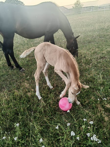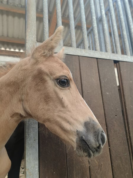 Hier gibt es nicht nur eine wunderschöne Palominofarbe, sondern auch beste Genetik. Elsa präsentiert sich als sehr korrektes und mutiges Fohlen mit viel Kraft in der Hinterhand und einem harmonischen Exterieur. Sie hat viel Energie, ist aber sehr umgänglich. Lässt sich brav halftern und führen, gibt Hufe und lässt sich überall anfassen, einsprühen, etc. Ideales Sportpferd für einen ambitionierten und versierten Reiter/Reiterin in der Vielseitigkeit oder im Springsport. Endmaß sollte bei ca. 1,66m liegen. In Premium-Aufzucht mit hochwertigem Futter, regelmäßigem Schmied und täglichem Weidegang seit Geburt. Kann dort auch verbleiben, falls ein Aufzuchtplatz benötigt wird. Nur aufgrund persönlicher Umstände abzugeben. Platz vor Preis, sportliche Förderung steht im Vordergrund. Bei entsprechenden Referenzen bin ich bereit entgegenzukommen. ------------------------------------------------------------------------------------------------------------------ Bereit für einen Exkurs in ein Leistungspedigree? Der Vater Vanilla Ice de Tamise, ein goldgelber Palomino, ist ein Junghengst und Neuzugang im berühmten belgische Gestüt Stal de Muze. Er wurde letzten Winter schonend angeritten, hat die Belgian Stallion Competition (Springen) absolviert und wird nun für eine Karriere als Vielseitigkeitspferd vorbereitet. Vanilla Ice ist charakterlich einwandfrei und extrem rittig. In seinem Pedigree finden sich nicht nur Stars aus dem S-Springparcours wie Kasanova de la Pomme, Bamako de Muze und Darco, sowie der selbst bis 1,40m erfolgreiche Falbe Cream on Top, sondern auch mütterlicherseits echte Highlights. Mutter Lagune van't Verahof lieferte neben Popeye de Tamise (1,50m) auch bereits Olympic de Muze (4* Karin Donckers) und Ragdoll de Tamise (3* Wouter de Cleene). Großmutter Southern Queen xx ist vor allem bekannt für Ihre Nachkommen Fletcha Van't Verahof (4* Legende von Karin Donckers), Heras van't Verahof (1,60m) und Leipheimer van't Verahof (4*, gekört und Olympiapferd von Karin Donckers). Genetisch und auch im echten Leben ein Hengst der begeistert. Die Mutter von Elsa ist im Hannoveraner Hauptstutbuch eingetragen inkl. Freispringen. Sie verfügt über raumgreifende Grundgangarten, fantastische Rittigkeit und eine sehr saubere Springtechnik (Technik 8,0). Durch einen Anhängerunfall mit Teilabriss des Nackenbandes ist sie leider nicht im Sport gelaufen. Muttervater Viscount gilt als sicherer Doppelvererber. Er ist väterlicherseits ein Halbbruder zu Nadine Marzahls viel zu früh verstorbener Valentine. Er selbst hat Nachkommen in allen Disziplinen bis Klasse S. In der VS u.a. Viscount Victor (5* Tim Price), Venezuela (4* Emily Grace), Very Special (4* Brandon Schäfer-Gehrdau), Vidalgo (3* Kevin McNab), Viscina (3* Felix Vogg), Valetta (3* Jörn Warner), und viele mehr. Die Großmutter war nach einem späten Einstieg selbst im Sport unterwegs (mangels passendem Reiter nur bis 1,30m). Sie ist eine der letzten noch lebenden und in Deutschland verbliebenen direkten Mytens xx Stuten und erfreut sich mit 23 bester Gesundheit. Mytens xx gilt als eine Legende der Vollblüter in der Warmblutzucht. Er selbst ist ein Sohn eines Weltrekordpferdes und wurde als Jährling für 995.000 USD nach England verkauft, gewann dort Rennen und wechselte dann in den Springsport, wo er bis in die schwere Klasse erfolgreich war. Mytens lieferte Sportpferde für alle Disziplinen, u.a. die Derby-Sieger Watermill Fourth xx und Watermill Seven xx, viele S-Springpferde wie Hamar (gek. USA), Haydn (gek. SWE), Helibantos, Hytens (gek.), Mullins (Tjark Nagel), Joint Venture (JAP) und viele mehr, sowie in der Vielseitigkeit My Win (gek., 4* Lazlo Egyed HUN), Mighty Magic (gek., 3* Andreas Dibowski), Irco B/Igeret (gek. 3* Bor Schaller HUN) und weitere. Hier findet sich außerdem der Doppelvererber Gambler's Cup xx eingesetzt auf dem ostpreußischen Stutenstamm (O184 A Hoffmann Motitten). Der Stamm ist ein kleines Juwel, neben der Hannoveraner Stute des Jahres 2009 brachte er zudem einige gekörte Hengste, sowie etliche sporterfolgreiche Pferde. Dazu zählen u.a. die S-Springpferde Lantinus Z (Olympiade Springen), Winnie H (Vollschwester zu Wilthy H), Sissi, Ciky Caloa, Salamander, etc. Sowie die S-Dressurpferde Primadonna, Wilwaukee, Al Pacino, etc. Eine Kombination aus dem eisenharten Blut der Ostpreußen, mit der Vielseitigkeit der der alten Hannoveranerlinien und eine guten Portion sportgeprüften Vollblütern.