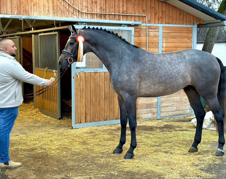 Zapassini De Bognar Z Farbe: Grey Stockmaß: 172 cm Alter: 3,5 Jahre Eignungen: Springpferd / Sportpferd / Zuchthengst Ausbildungsstand: Mittel (fortgeschritten im Springsport) Zucht: Zangersheide Hengst, geprüft und zugelassen – Approved Breeding Stallion Beschreibung: Zapassini De Bognar Z ist ein sehr athletischer, sportlich gebauter Hengst mit hervorragender Sprungtechnik. Seine natürlichen Fähigkeiten, schnelle Auffassungsgabe und ein ausgezeichnetes Bascule machen ihn zu einem idealen Kandidaten für den Springsport. Er stammt aus einer bewährten Blutlinie: VDL Zapatero x Cassilano – Cassini I x Odermus R – Calido I Gesundheitsstatus: röntgen- und endoskopisch geprüft, uneingeschränkt belastbar. Charakter: kooperativ, intelligent und leicht zu handhaben. Besonderheiten: Der Hengst befindet sich in Ungarn in Bertartung. Nach Vereinbarung jederzeit vor Ort besichtigbar. Auf Wunsch ist auch eine Video-Besichtigung per Anruf möglich. Dieser Hengst bietet enormes Potenzial sowohl im Sport als auch in der Zucht. Perfekt für Züchter, die auf Qualität und Leistungsbereitschaft Wert legen.