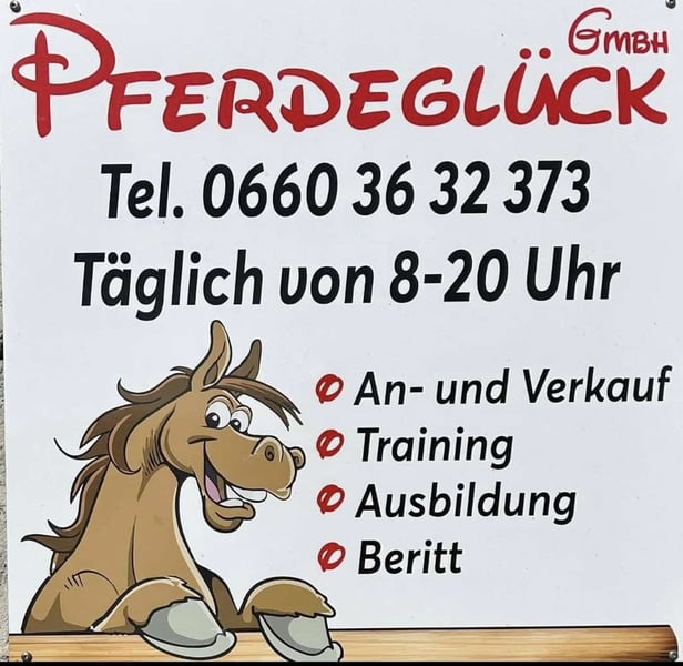 ¿Estás buscando un caballo adecuado? ¿O quieres vender tu caballo? ¡Entonces estás en el lugar correcto con nosotros, en Pferdeglück en Pelmberg! Somos tu socio confiable para la compra y venta de caballos. Ya sea un pony, un cálido deporte de sangre o un tranquilo caballo de tiro, siempre tenemos una gran selección de excelentes caballos para ti. Tus ventajas con nosotros: * Garantía de disponibilidad telefónica los 7 días de la semana al 0 6 6 0 3 6 3 2 3 7 3 * Pruebas de monta gratuitas todos los días de lunes a domingo de 8 a 20 horas * También se montarán los caballos antes de la prueba * Independencia del clima gracias a 2 pistas cubiertas * Organización de un examen de compra a petición * Transporte de tu nuevo caballo al establo ¡Programa hoy mismo una cita personal para probar o déjate asesorar sin compromiso! ¡Esperamos tu visita!