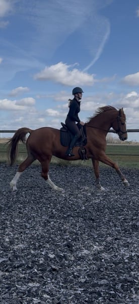 Oreo is a willing and versatile horse with many talents. His favorite activity by far is jumping a course, which he does with great enthusiasm and energy. The reason for selling him is that I cannot provide him with the environment he needs. Therefore, he is looking for a rider with the ambition to develop in jumping. I am seeking a top-quality home for Oreo, as he truly deserves it. In addition to jumping, Oreo is suitable for trail riding; going alone or in a group is no problem. He confidently loads onto the trailer and is easy to handle alone. He has often been on unfamiliar terrain and has recently started WE lessons, which he takes to very well. Videos of his jumping can be provided upon request. When purchased in 2024, Oreo will be sold with a veterinary health certificate, with no remarks. As mentioned, I cannot offer Oreo what he needs, which makes the difficult decision to sell him necessary. P.S. The farrier is always happy to trim Oreo, as he is incredibly well-behaved.
