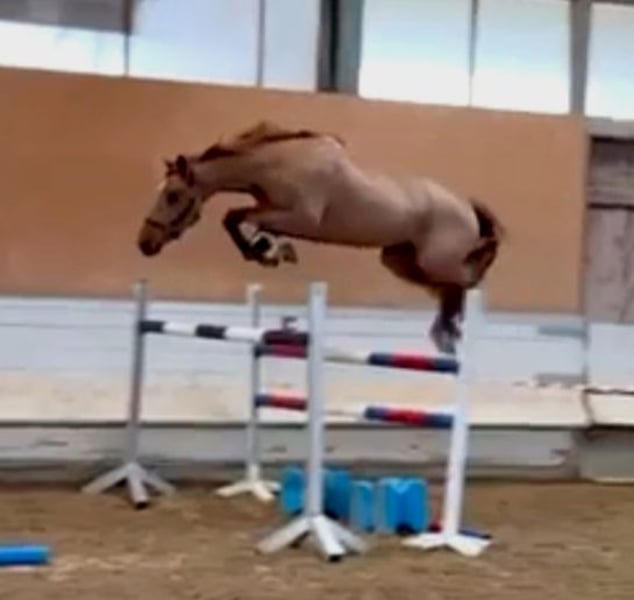 Young show jumping horse with excellent pedigree and a very strong dam line. Well-started under saddle, initial jumping attempts have been made. Good temperament and clear-minded. Underwent clinical and radiological examinations. Priced affordably due to a slight back curvature.