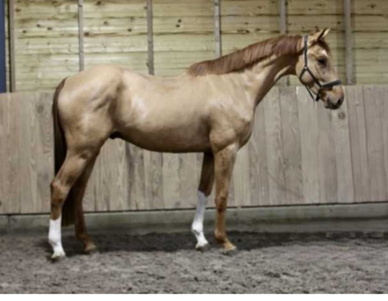 Jong springpaard met topafstamming en zeer goede moederlijn. Goed aangebonden, eerste sprongen onder het zadel gemaakt. Goed karakter, helder van geest. Klinisch en röntgenologisch gekeurd. Betaalbaar vanwege een lichte scoliose.