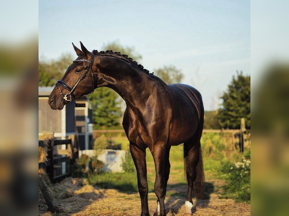 Gelding — Fontaine tn x san remo Year: 2022 Height: 183 cm Color: Bay Breed: Sport horse Training level: L Competition level: L Flying changes: No Amateur friendly: Yes — very easy, suitable also for less experienced riders Impressive gelding with exceptional presence and maturity. Judges describe him as looking and moving like a 6-year-old, with clear natural ability for collection and higher work in the future. He shows strong focus in the ring and even improves his concentration during competitions. Very easy in handling and uncomplicated under saddle. Not spooky at all, calm in different environments, and confident at shows. A tall, powerful horse with clear potential and a good mindset for sport. Country: Netherlands