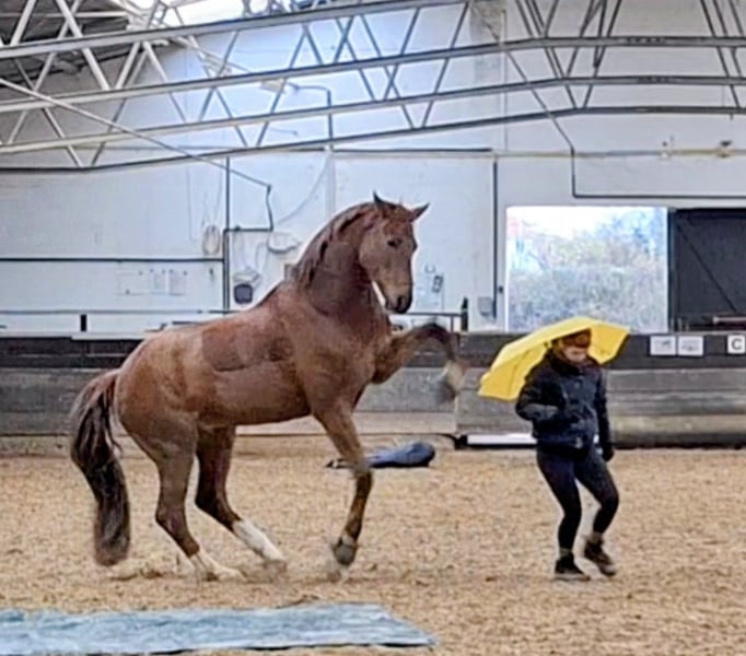 Hermoso y expresivo caballo de color alazán oscuro ☆☆☆ Flumie ☆☆☆ Tres pasos básicos muy buenos Ganadora en Reitpferde y Dressurpferde A Montable con GO Muy tranquila y sensible Saludable, buenas radiografías disponibles Un caballo increíblemente cariñoso y muy sociable con las personas A Flumie le gusta mucho trabajar en tierra y en libertad Muy amigable con otros caballos, tiende a ser de rango bajo No se vende a revendedores Agradezco consultas serias Video a petición Prueba de monta 35 €