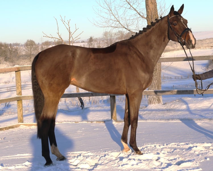 This stunning 7-year-old gelding from an excellent dam line (the dam has already produced four offspring competing in the advanced class) is ready to compete immediately in show jumping and would surely impress in a Youngster S class this season! He is not only very well-trained and easy to ride but also jumps very confidently—careful, with excellent technique and top reliability! An ideal sport partner for riders with higher ambitions. He is also perfectly suitable for junior riders. A recent full health certificate (AKU) is available!