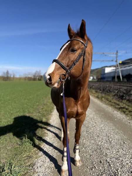 Schweren Herzens suche ich für meinen 9-jährigen Fuchswallach „Ronaldo“ ein neues, passendes Zuhause. Er ist ca. 1,70 m groß, besticht durch seine schönen Gänge und sein liebenswürdiges Wesen. Dressurmäßig ist er solide ausgebildet und bringt eine gute Basis mit, auf der sich weiter aufbauen lässt. Im vergangenen Jahr absolvierte er zudem drei Parcours auf Turnieren in der Höhe von 90–95 cm mit einem erfahrenen Reiter. Ronaldo ist im täglichen Umgang absolut unkompliziert: Er ist sehr brav beim Hufschmied, lässt sich problemlos verladen und ist auch alleine gut händelbar. Er zeigt sich stets freundlich, menschenbezogen und zuverlässig – kein Bocker oder Steiger. Beim Springen hat sich jedoch gezeigt, dass wir als Paar nicht optimal harmonieren. Daher sehe ich ihn eher als vielseitigen Freizeitpartner. Für Cavalettiarbeit, sowie abwechslungsreiche Arbeit wie Bodenarbeit, Longieren und Dressur ist er geeignet. Ich wünsche mir für Ronaldo eine einfühlsame Person, die Freude daran hat, ihn weiter zu fördern und ihm ein liebevolles Zuhause bietet. Weitere Informationen, Videos und Preisangaben gerne auf Anfrage. Keine Händler!