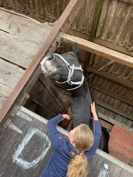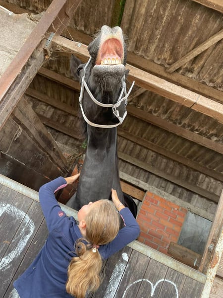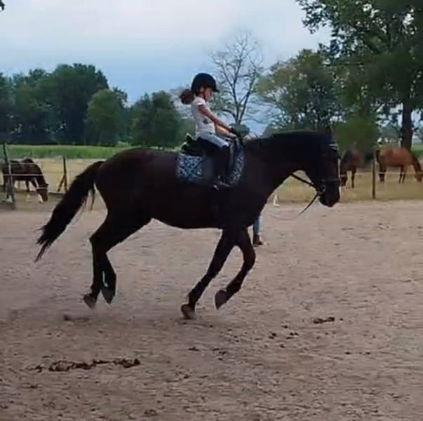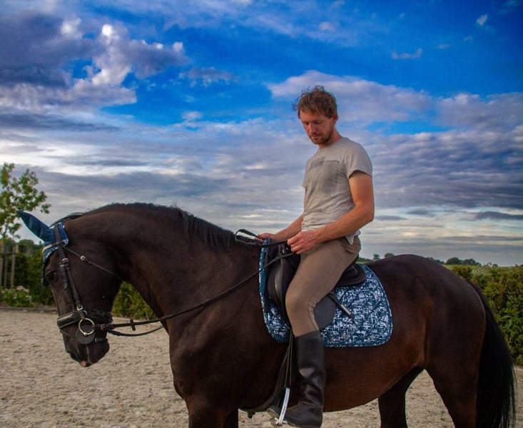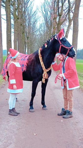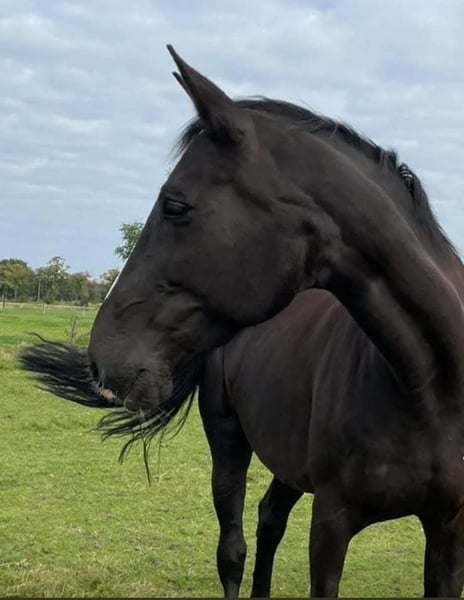 Dissandra is an impressive, large, and beautiful mare. In her younger years, she competed in Prix St. Georges. She has excellent dressage buttons and responds well to aids, making her suitable for medium-level work. Nevertheless, she also has a strong jumping bloodline and loves to jump very much. While she has already reached her peak in her dressage career, she still brims with energy and enthusiasm for working, jumping, walking, or running in the forest—preferably in all gaits. Additionally, I can cuddle her for as long and as intensively as needed. She enjoys being scratched and massaged and responds very well to groundwork. She is very caring and protective within her herd. If there is a foal nearby, she takes good care of it. Due to a move, we are no longer able to keep the horses.