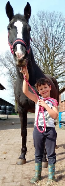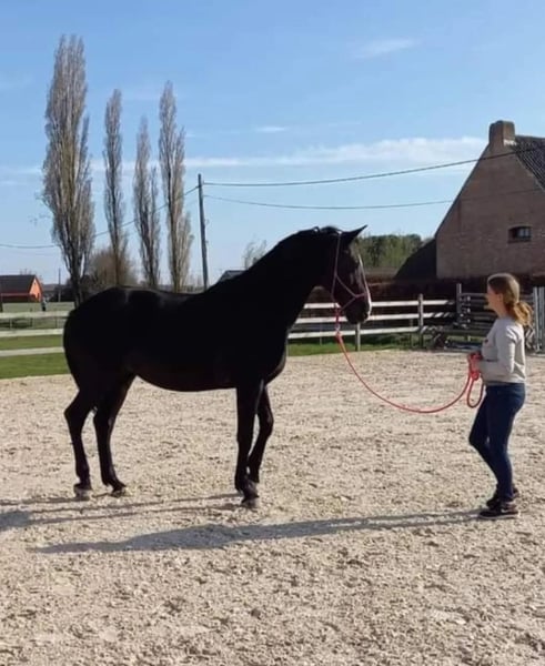 Dissandra is een indrukwekkend groot en mooi paard. In haar jongste jaren reed ze prix st george. Ze heeft dus dressuurknopjes. Hulpen vragen is mm-werk. Toch heeft ze springbloed en springt ze ontzettend graag. Dissandra heeft haar hoogtepunt al bereikt, maar loopt nog over van energie om te willen werken, springen, wandelen of rennen in het bos, liefst in alle gangen. Daarnaast mag ik zo lang en intens knuffelen met haar als nodig is. Ze houdt van gekriebeld en gemasseerd te worden. Ze reageert heel fijn op grondwerk. Ze is heel zorgzaam en beschermend in de kudde. Een veulen in de buurt? Dan ontfermt ze zich erover. Wegens een verhuis, kunnen wij de paarden niet meer houden.