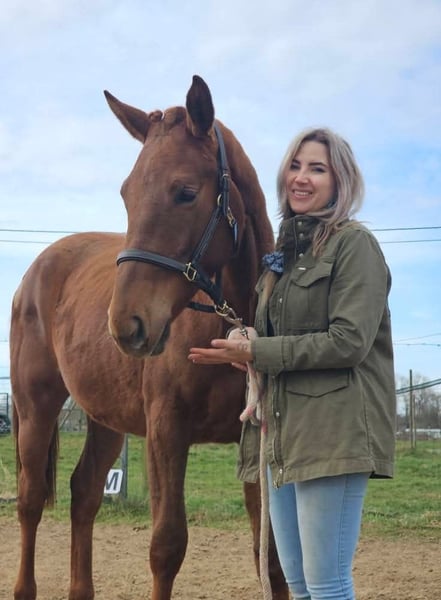 ✨ In vendita: cavalla da dressage di 2 anni con pedigree eccezionale e grande potenziale ✨ Con grande dispiacere offriamo la nostra splendida cavalla di 2 anni ✨Athena van de zoothoeve.✨ Possiede un pedigree eccezionale, molta qualità nei suoi movimenti e un carattere gentile e volenteroso. 🔹 Pedigree Padre: Racoon (Hero x De Niro) – stallone approvato BWP, di successo nello sport e noto ai Campionati del Mondo di Giovani Cavalli da Dressage con Franka Loos. Madre: My Challenge van de Pferheim – figlia di Washington DC Heldenlaan (Espri x Pia), uno stallone noto per i suoi nobili discendenti con un buon atteggiamento e prestazioni sportive. 🔹 Informazioni sulla cavalla Età: 2 anni (nata il 27/05/2023) Sesso: femmina Razza: BWP / Caldo Altezza: ca. 1m68 Movimento: tre andature corrette ed elastiche con scioltezza e forza Aspetto: moderno, costruzione corretta, molta presenza Carattere: amichevole, orientata verso l'uomo, desiderosa di imparare e volenterosa In gestione: brava al capestro, dà i piedi, si fa lavare, in stalla e nel luogo di toelettatura, dal maniscalco; conosce le basi del lavoro in longhina ed è abituata alla cura di base Salute: correttamente sverminata, completamente vaccinata (incluso rhino), approvata RX 🔹 Perché è speciale? Questa cavalla combina sangue da dressage collaudato tramite Racoon e De Niro con la forza e l'atteggiamento di Washington DC Heldenlaan. È quindi molto interessante per il futuro – sia nello sport di alto livello che nell'allevamento. 📍 Luogo: Rillaar ⚠️ Importante: Cerchiamo per questa cavalla una casa amorevole e adeguata, dove riceverà l'attenzione, l'addestramento e le cure che merita. Non in vendita a maneggi o luoghi dove i cavalli non ricevono sufficiente attenzione. ➡️ Interesse? Non esitate a contattarci tramite messaggio privato o WhatsApp per ulteriori informazioni o per pianificare una visita.