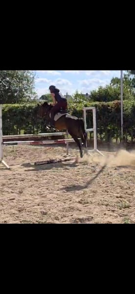 Poney C, réservé aux cavaliers expérimentés et confiants. Mesurant 1,36 m. Poney belge de sang chaud. Âge : 9 ans. Un poney avec du tempérament, mais aussi une excellente école pour apprendre. Saut à 1,10 m Saut libre à 1,30 m Capable de sauter encore plus haut. Expérience en compétition, il sautera toujours et n’est pas regardant. Adore faire des promenades en extérieur, il n’a pas peur du trafic et ne sursaute pas. Vendu car ma fille a grandi et ne peut plus le monter.