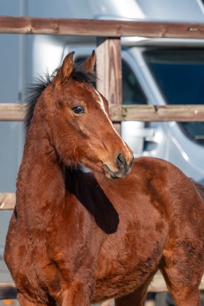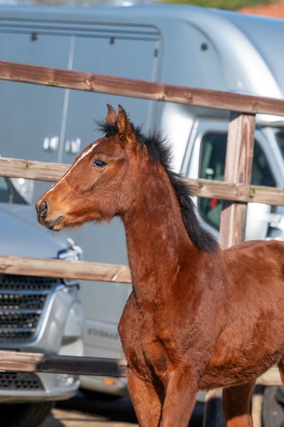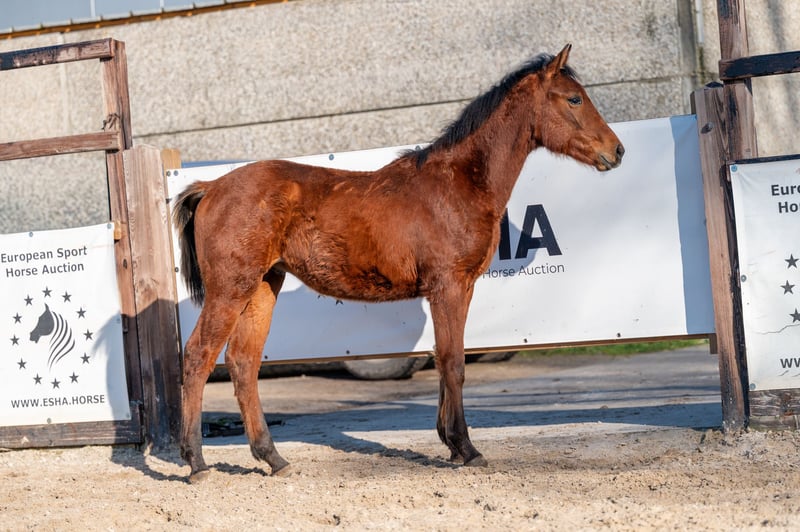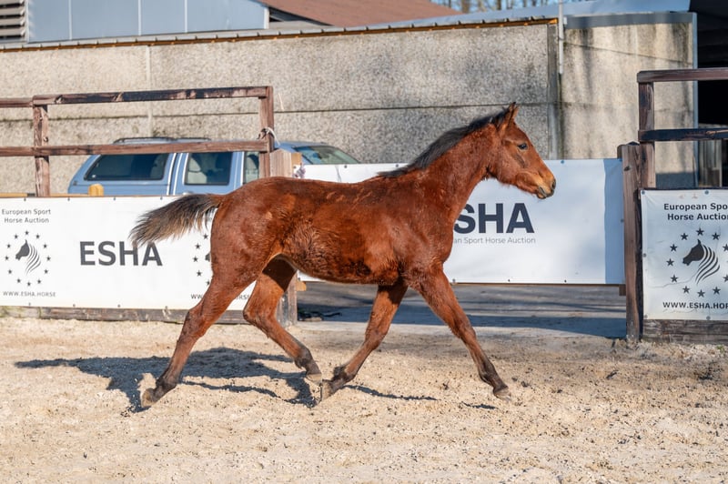 Dit bruine hengstveulen uit 2025 presenteert zich als een interessant jong talent voor de toekomst. Hij beschikt over een mooi en correct model en maakt daarmee meteen een goede indruk. In beweging toont hij drie correcte gangen en beweegt hij lichtvoetig en soepel, met een reeds goed gebalanceerde galop. Ook op een klein hindernisje laat hij een goede instelling en natuurlijke aanleg zien. Zijn afstamming DIDAS DE L’ESPERANCE x BAMAKO DE MUZE draagt bij aan zijn veelbelovende sportpotentieel.