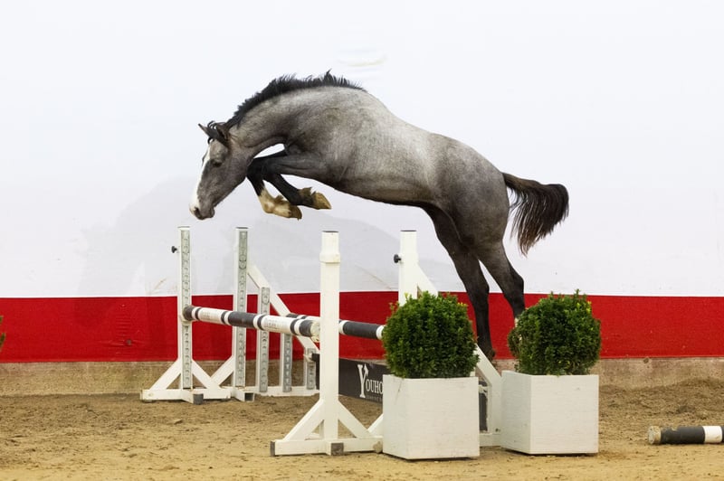 Jährlingshengst Baresi N zeigt eine gute Absprungtechnik und ist vorsichtig im Umgang. Ein vielversprechendes Springpferd für die Zukunft mit einem eleganten Exterieur. Vater Ermitage Kalone ist ein Publikumsliebling, geritten von Gilles Thomas. Der Sohn von Catoki nahm an den Olympischen Spielen in Paris teil und hat in diesem Jahr bereits fast 350.000 Euro an Preisgeldern gewonnen (Stand 1. November). Mutter Pamina V Z stammt ab von dem 1,60 m großen Grand Prix-Hengst Plot Blue, geritten von Marcus Ehning. Sie hat bereits zwei internationale Springpferde hervorgebracht: den elfjährigen Viggo (1,55 m Grand Prix mit Gert-Jan Bruggink) und die achtjährige Rabanna Obolensky (1,45 m Springen mit Millie Allen). Großmutter Mareike II (Corofino) züchtete ebenfalls sehr erfolgreich, mit Nachkommen wie Carla Colucci (1,60 m GP), Quinta 74 (1,55 m GP), Costa del Sol (1,50 m GP) und dem CCI4*-Vielseitigkeitspferd CP Qualified. Sie ist selbst eine Halbschwester des 1,60 m großen Grand Prix-Hengsts Looping.