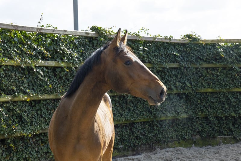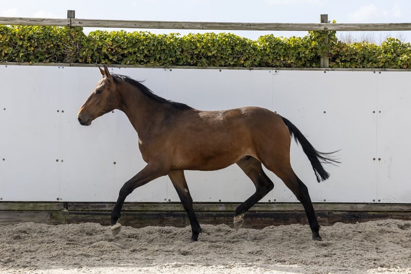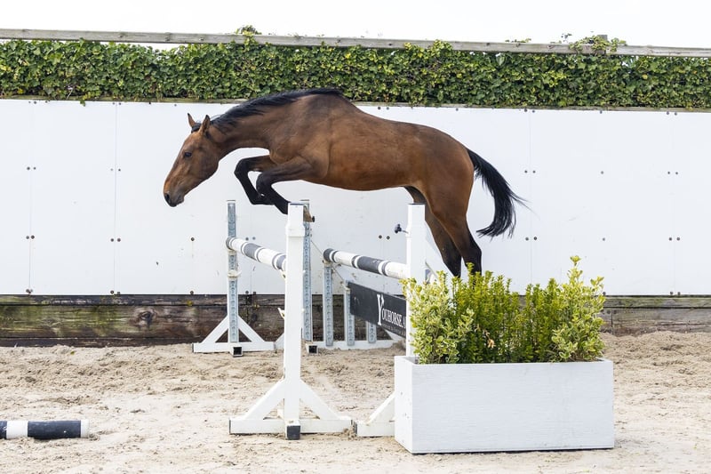 Nog maar twee jaar oud. Eigenlijk had hij op deze leeftijd één losse sprong moeten maken, maar door omstandigheden sprong hij al een heel lijntje. Dat zegt genoeg over zijn instelling en natuurlijke vermogen. Hij valt direct op door zijn zeer goede voorhandtechniek – iets wat je niet altijd ziet bij een Diamant de Semilly, en bij die lijn hoef je over vermogen nooit te klagen. Hij springt met veel afdruk, toont een grote galop en beschikt over fijn bloed. Modern, atletisch en met een natuurlijke balans. Een jong paard met uitstraling en kwaliteit. Vader Diamant de Semilly (1.60m Grand Prix) is één van de meest invloedrijke hengsten ter wereld. Hij bracht talloze 1.60m–1.70m paarden zoals Dominator 2000 Z (1.70m), Arioto du Gevres (1.70m) en Mumbai (1.70m). Hij is goedgekeurd bij onder andere Holstein, BWP, Zangersheide en SF. Vermogen en hardheid zijn vaste kenmerken van deze lijn. Moeder Jessy Belle de Muze (v. Denzel v’t Meulenhof 1.40m) komt uit de wereldberoemde Belle-van-Sombeke stam. Grootmoeder Dabelle (v. Nabab de Rêve) sprong zelf op 1.60m niveau met klasseringen in CSI5*-wedstrijden zoals Stuttgart en Stockholm. De derde moeder Ta Belle van Sombeke (v. Chin Chin) sprong eveneens 1.60m. Uit deze directe stam komen een indrukwekkend aantal internationale sportpaarden: Beau de Laubry Z (1.65m CSI5* winnaar in Dinard en Stuttgart), Colibelle Hero Z (1.60m), Dragibus d’Ick (1.55m), Extra Belle d’Ick (1.55m), Golden Hawk (1.60m, winnaar CSI4* Liverpool en Hickstead), Glock’s London (1.60m, winnaar CSI4*), Mom’s Oak Grove’s Heartfelt (1.60m), Arac du Seigneur (1.60m), Mom’s VDL Groep Eureka (1.60m), Quabelle (1.60m) en Ratina Kervéc (1.60m). Daarnaast talloze 1.40m–1.50m paarden en meerdere goedgekeurde hengsten zoals Golden Hawk (AES), Casters vd Haterbeek Z (ZANG), Ambassador Z (ZANG), Aganix-gerelateerde hengsten, Cumano- en Chacco-Blue-zonen. Een moederlijn die structureel levert op het hoogste niveau. Dit is geen gewone stam. Dit is een stam die Grand Prix-paarden maakt.