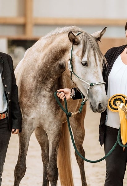 Berberstute – fein, sensibel & mit viel Potenzial • 2021 geboren • ca. 152 cm Stockmaß • Abstammung: aus Bejaja des Balmes von Benazzou des Balmes • 2025 im VFZB Stutbuch I eingetragen • 3. Platz 2025 im französischen Championat Beschreibung: Diese elegante, leichtfüßige Berberstute überzeugt durch viel Ausdruck und eine besonders feine Kommunikation mit dem Menschen. Sie ist sensibel, aufmerksam und arbeitet gerne mit ihrem Menschen zusammen. Sie wurde bereits 4-jährig im Gelände angeritten. Aktuell ist sie bei uns nicht geritten und kann daher auch nicht probe geritten werden – hier braucht sie noch etwas Routine und weitere Bodenarbeit. Im Umgang zeigt sie sich: ✔ unerschrocken ✔ selbstsicher ✔ neugierig ✔ kooperativ Sie baut eine enge Bindung zu ihrer Bezugsperson auf, bringt aber auch eine eigene Persönlichkeit mit. Sie reagiert sehr fein auf Signale und wünscht sich daher einen ruhigen, einfühlsamen und erfahrenen Menschen, der ihre Sensibilität versteht und Geduld mitbringt. Für wen ist sie geeignet? Für Menschen, die: • Freude an feiner Kommunikation haben • Zeit und Lust und Erfahrung und Geduld mitbringen, ein junges Pferd weiter auszubilden und es gute Erfahrungen machen zu lassen • eine enge Partnerschaft mit ihrem Pferd suchen Gesundheit & Zucht: • osteopathisch regelmäßig kontrolliert (ohne Befund) • noch kein Fohlen gehabt • sowohl als Reitpferd als auch für die Zucht interessant Warum wir sie verkaufen: Bei uns im Gestüt fehlt leider die Zeit, ihr gerecht zu werden. Mit der richtigen Förderung kann sie ihr volles Potenzial entfalten. Eine besondere Berberstute mit Herz, Qualität und Zukunft. Bei Interesse und für weitere Fotos und Infos gerne melden