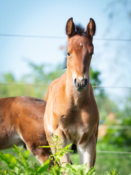 Ce jeune cheval exceptionnel, issu de la première génération du studbook marocain KAFFAF, un étalon de l’Atlas, cherche une place à la hauteur de ses qualités ! Ouvert, doux, doté d’une posture remarquable et d’un équilibre naturel, il sera sans doute une présence imposante sous la selle. Grâce à sa lignée maternelle exceptionnelle, issue de la jument St.Pr. Danaelle Al Mansour, de la souche Ondee des Aures, il représente un pur-sang arabe-Berber de grande qualité. Cette famille de jumentes, exclusivement d’origine algérienne-tunisienne, a produit à la fois des juments primées au studbook et la championne d’Europe 2024. Bien que son pedigree indique un peu plus de 25 % d’ox, cette origine berbere de qualité ne fait aucun doute. Ouzoud est proposé à un prix bien inférieur à sa valeur réelle, car au printemps 2025, il a développé un œdème osseux mineur lors de sa croissance. Bien que cela n’ait jamais posé de problème médical, il pourrait nécessiter une attention particulière pour la protection de ses membres lorsqu’il sera monté (voir vidéo). Une échographie (AKU) est vivement recommandée pour les futurs intéressés !