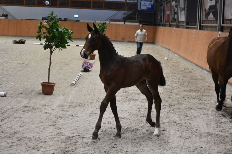 Poulain typé par le célèbre étalon Casall x Darco x Lordanos. Le poulain a reçu le Holstein Foal Premium. C’est un poulain moderne de type étalon qui a 3 très bons GGA. Holsteiner Stamm 776. Un fils de la mère Golden Lady ; Don Darco a été vendu au Canada en tant qu’étalon lors de la vente aux enchères Holstein au printemps.