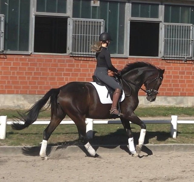 Quilena is full sister to the Hanoverian-approved stallion Quintessential, who was the winner of the stallion performance test with an outstanding score of 8.94 (with a 9.7 in canter), became vice-champion at three years old, and was nominated for the Bundeschampionat of three-year-old stallions. She is a strikingly beautiful and elegant mare, and when she moves, she captures everyone's attention with her powerful, expressive, yet light-footed movement. She moves confidently at the A-level, and most of the L-level exercises are already mastered and seem to bring her joy. A very good TÜV inspection, including neck and back, is available. Quilena boasts an excellent pedigree: her sire Q-Sieben was the dressage winner at his three-year-old 14-day test with a score of 8.71 and a 9.5 for rideability, and he was crowned vice-champion. On her dam's side, Quilena comes from an old Hanoverian mare line dating back to 1883, which has produced numerous high-priced elite auction foals and horses. This line includes winners at the Hanoverian Verband auction, as well as licensed stallions such as Edinburgh and S-placings up to St. Georg, for example, the successful Grand Prix horse Weltgraf II. The licensed stallion Laudabilis, with many licensed sons, also descends from this old and successful mare line, which is related to her third dam. Quilena is a mare of honest character, with outstanding movements in all three basic gaits, eager to reach the top, and capable of a highly successful dressage career.