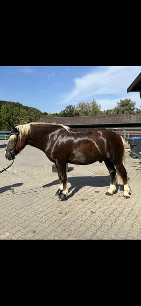 Filou – Black Forest Chestnut Gelding, 9 years old – Lovable, Reliable, and Versatile We are offering Filou, a truly lovable nine-year-old Black Forest chestnut gelding. He fully embodies the calm, balanced, and people-oriented nature typical of his breed, which makes him so special. Filou impresses with his dependable character, resilience, and eagerness to learn. In daily handling, he is completely straightforward: friendly, attentive, and always striving to please his handler. Farrier visits, loading, or new environments – he handles everything confidently and calmly. Therapeutic Horse Potential: Thanks to his patient and balanced temperament, Filou is also well-suited for therapeutic work. Even in unfamiliar situations, he remains calm and sensitive. We have also tried vaulting in walk and trot. The attached videos show his very first and only vaulting attempt so far, which he completed very calmly, relaxed, and without any excitement. Important Notice: Filou is not a driving horse – and will not be sold as such Filou must not be driven under any circumstances. As a young horse, his training for pulling a carriage was severely mishandled, leading to a deep-seated panic response whenever a cart is attached behind him. Despite six years of patient and gentle work, this could not be safely or successfully resolved. During initial reattempts, an accident occurred, demonstrating that he is permanently unsuitable and not resilient enough for driving. Therefore, Filou is explicitly not offered as a driving horse. Sporting Abilities Filou has competition experience and has competed three times in A-Dressage at student riding tournaments – each time with great success. With my now 14-year-old daughter, he has achieved placements in E-Dressage and is overall trained to A-level. Important to Know: Filou is very good at dressage – but it is not his daily passion. On good days, he works diligently and ambitiously with nice basic engagement, but he does not want to be consistently and daily dressage-trained. This is one of the reasons we are reluctantly offering him for sale. He remains calm and cautious with inexperienced riders and tends to be a bit more spirited. With experienced riders, he shows eagerness, diligence, and motivation. Trail Riding In the terrain, Filou is a wonderful partner. He can be ridden alone in walk without any issues. In higher gaited work, he enjoys showing his typical Black Forest liveliness and sometimes offers a slightly faster pace – but always remains well controllable. Housing Preference – Only the Best! Filou will only be placed with a loving, perfectly suited home. Ideal would be a pasture with a large paddock, plenty of movement space, and 24/7 hay in mesh nets. Pasture turnout should be very limited and only for a few hours at a time. During summer, he is on pasture for about two hours daily, with a grazing muzzle that he accepts without issue and has never shown any resistance to. An ideal home would be one where turnout is not essential, and instead, a spacious paddock is the main focus. Filou is a characterful, gentle, and versatile horse who deserves the right person – someone who appreciates his strengths, understands his needs, and can provide him with a permanently loving home.