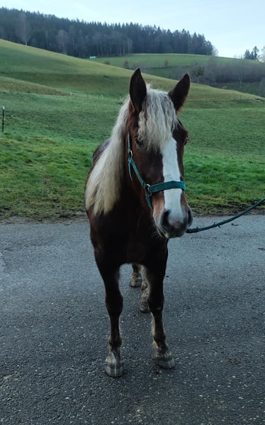 1.5-year-old Black Forest (Schwarzwälder) chestnut mare Born May 2024 Sire: JHP LH HB Rodewald Dam’s sire: JHP LH Drachenfels Up for sale is a stylish, expressive young mare with plenty of charm and presence. She is consistently well-behaved and easy to handle, and is both farrier- and loading-friendly, impressing with her friendly nature. At the foal inspection in Kohlenbach 2024, she was awarded a gold medal – a testament to her quality and excellent conformation.